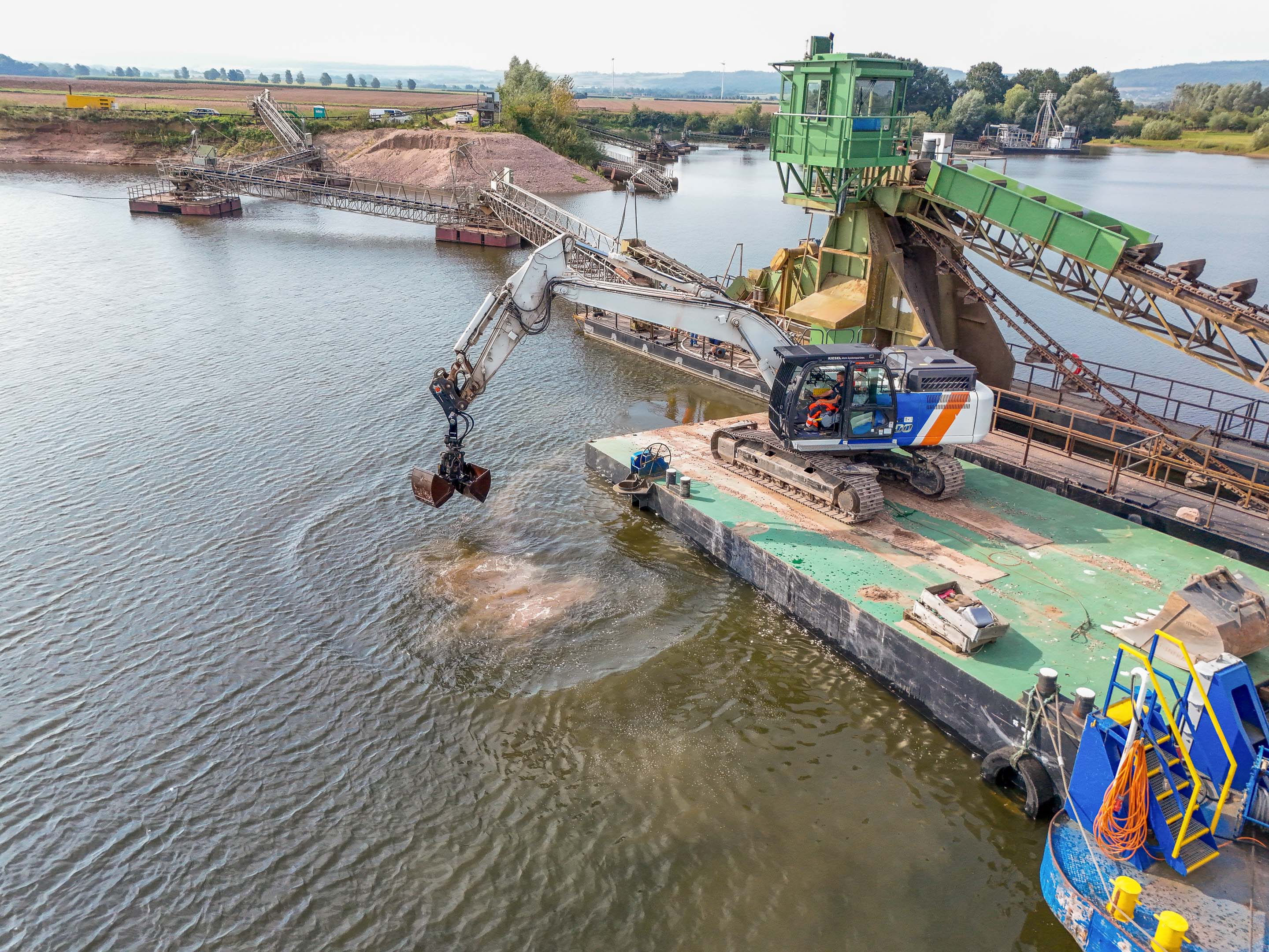 Wir durften das Weserkieswerk Hessisch Oldendorf bei Wasserbaggerarbeiten unterstützen, hierfür konnten wir auf das Ponton vom Kieswerk Eggersmann und das Schubschiff von @ahe_betonwaren zurückgreifen.