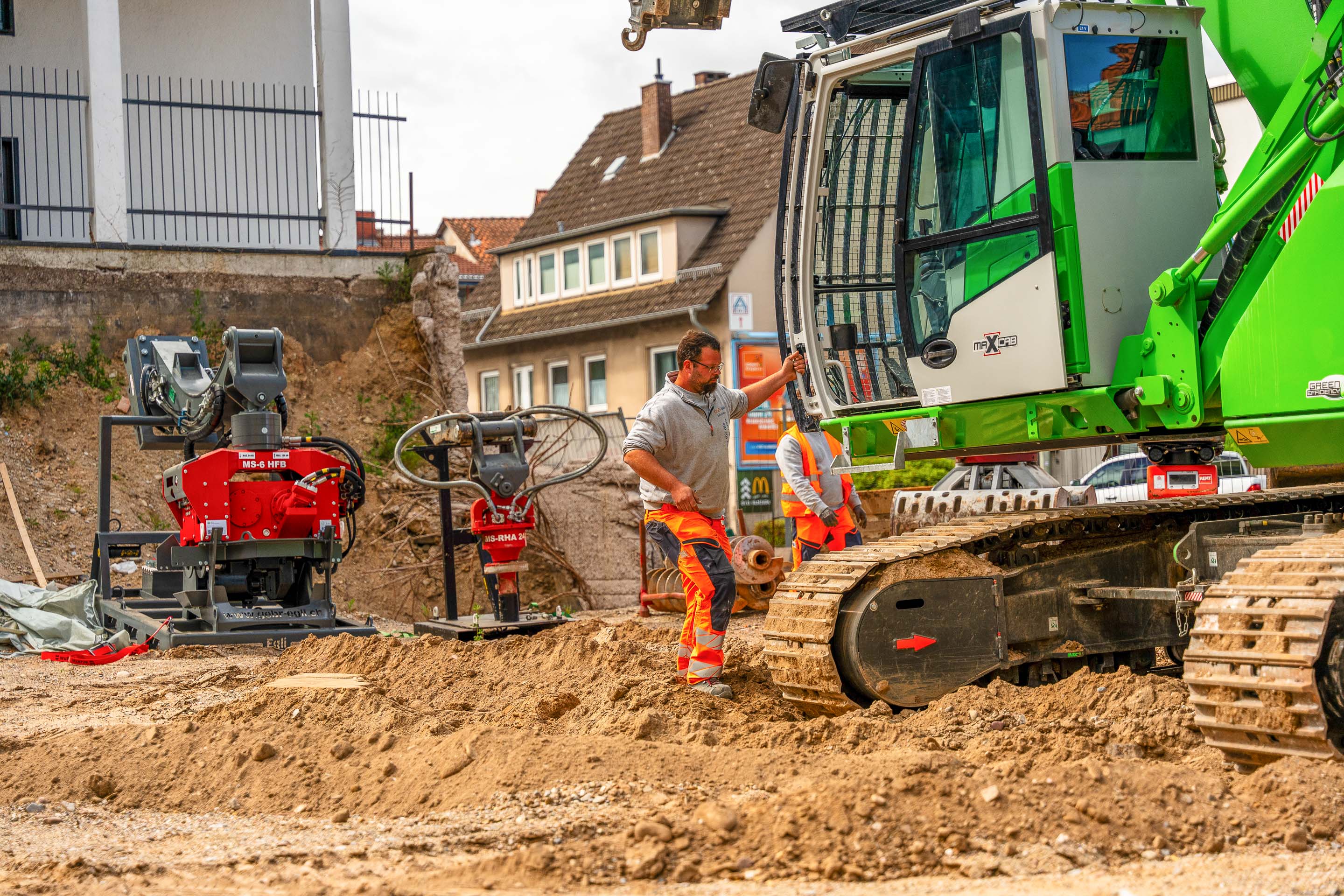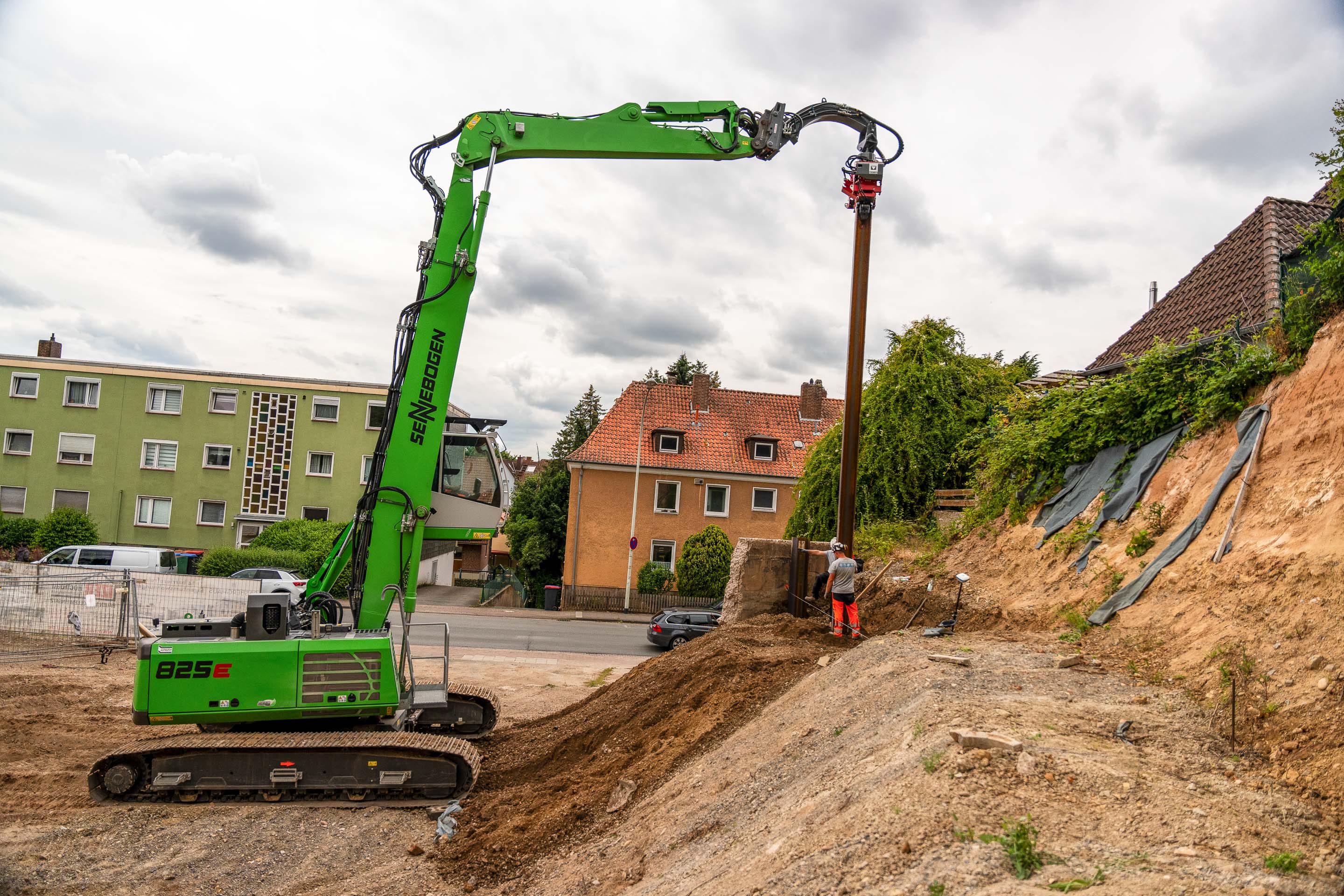 Herstellung des Berliner Verbaus für das Basberg-Quartier mit dem leistungsstarken Sennebogen 825.