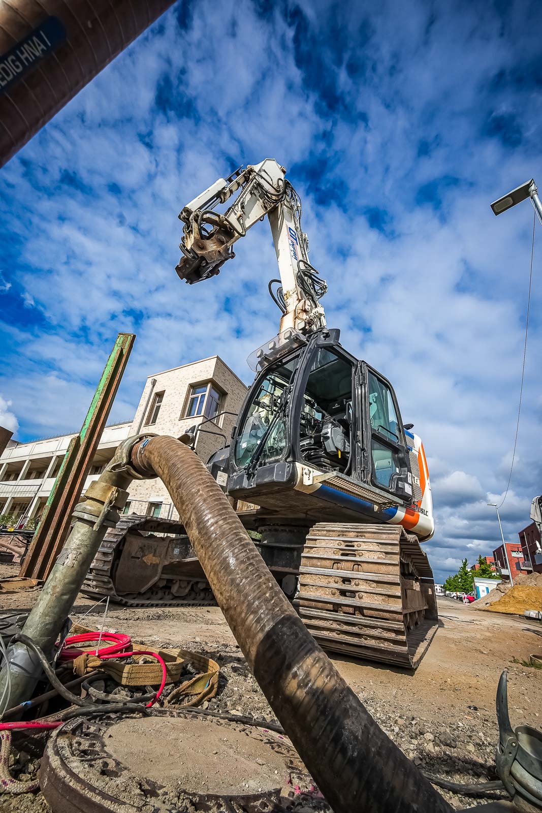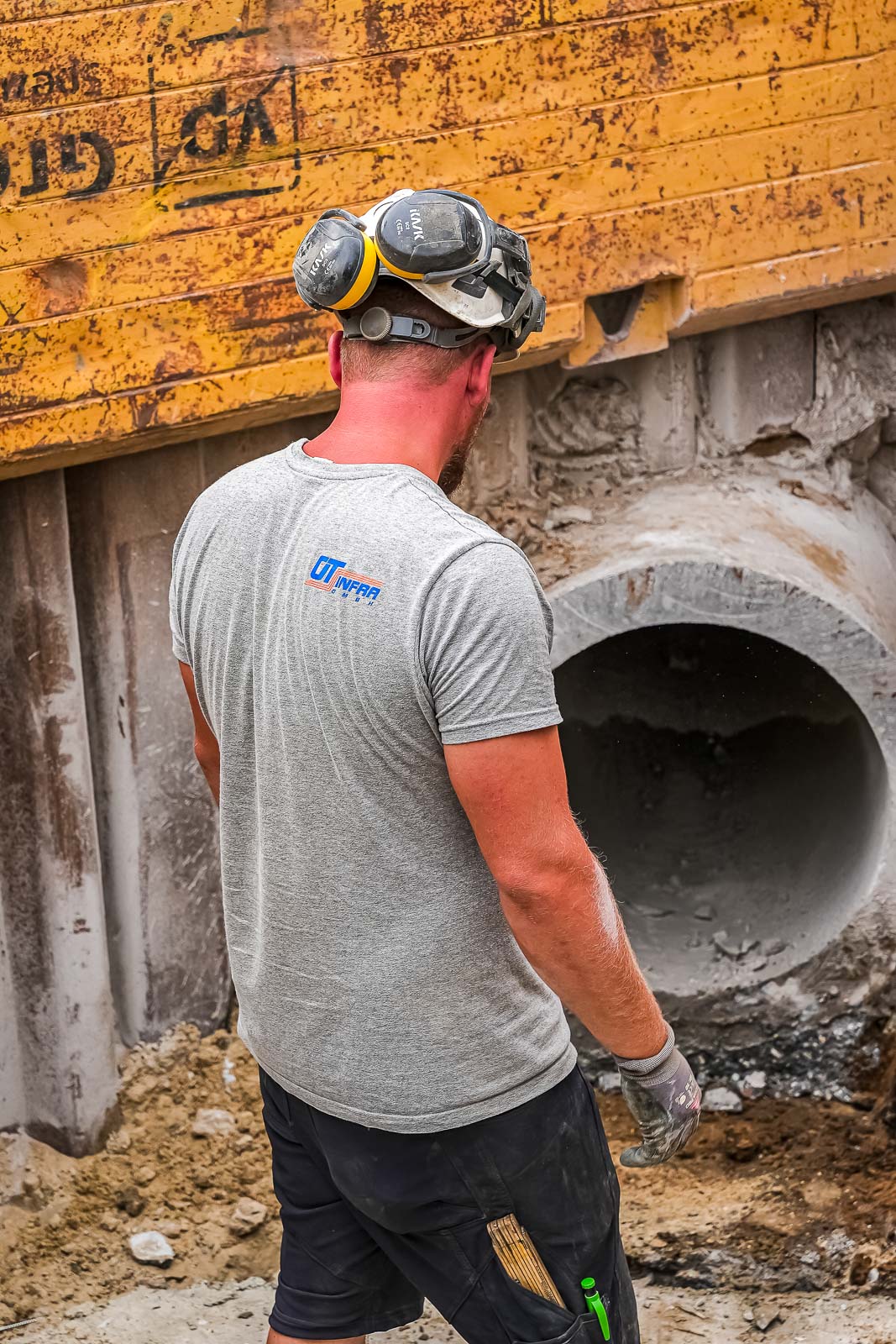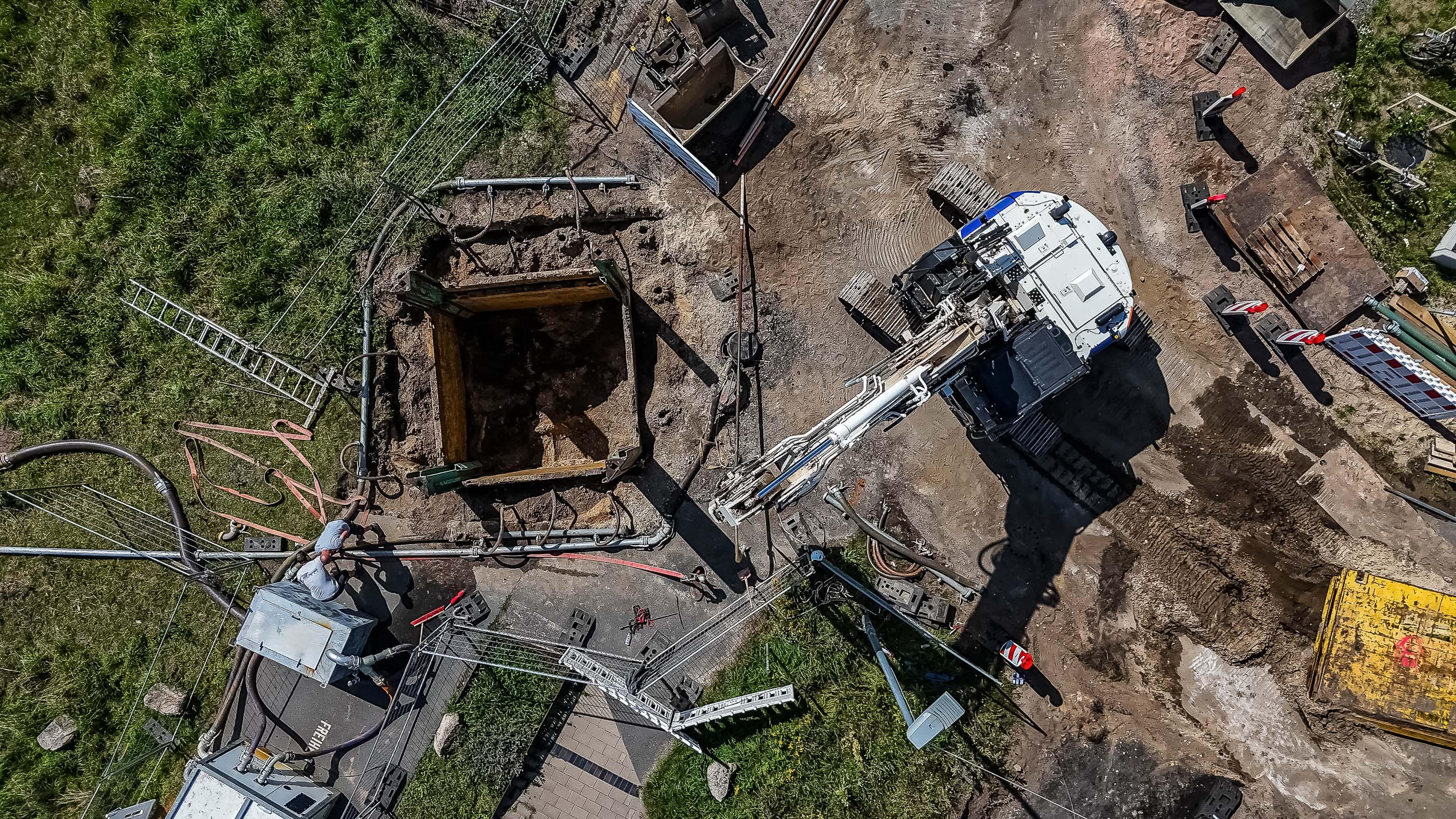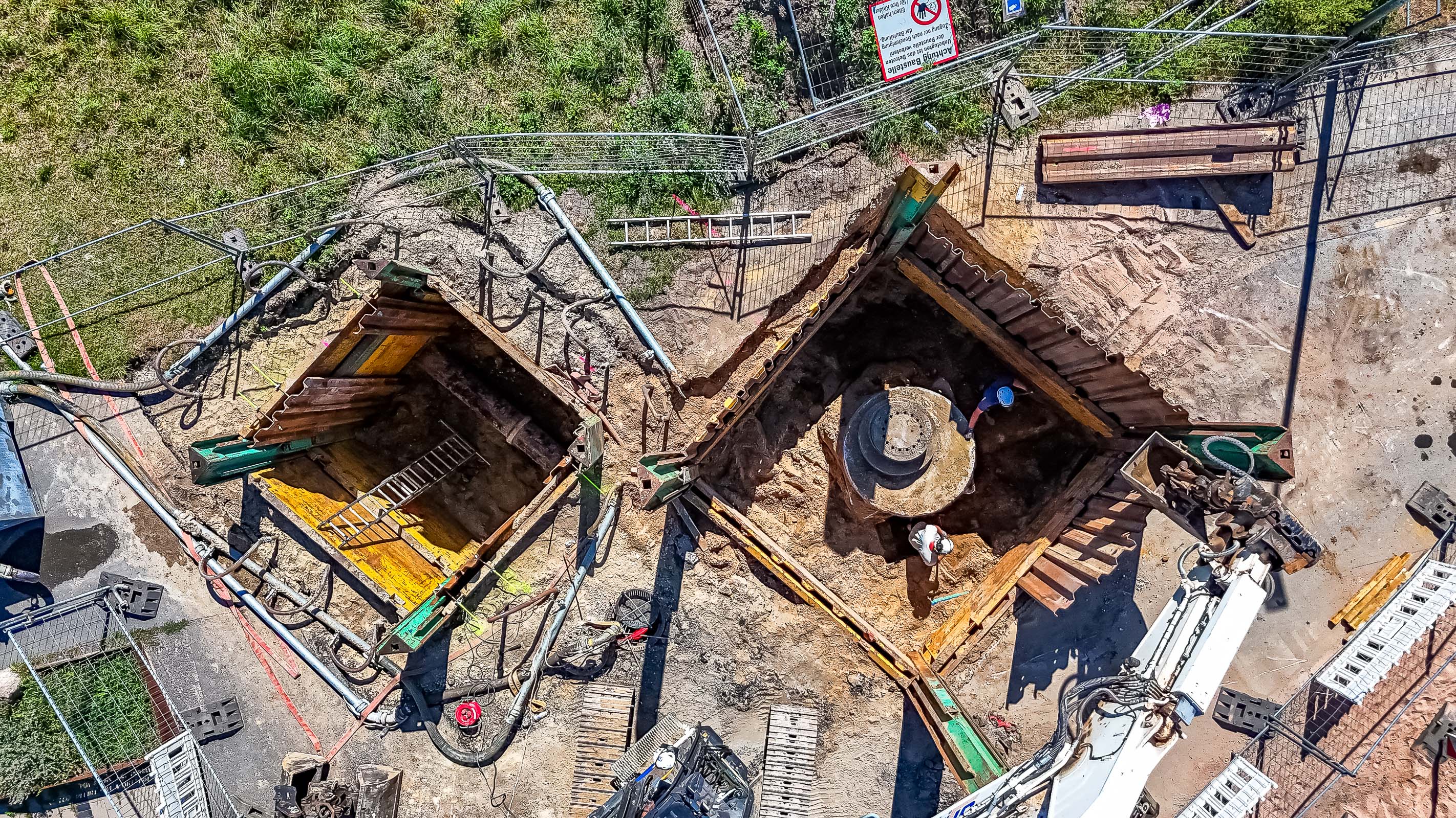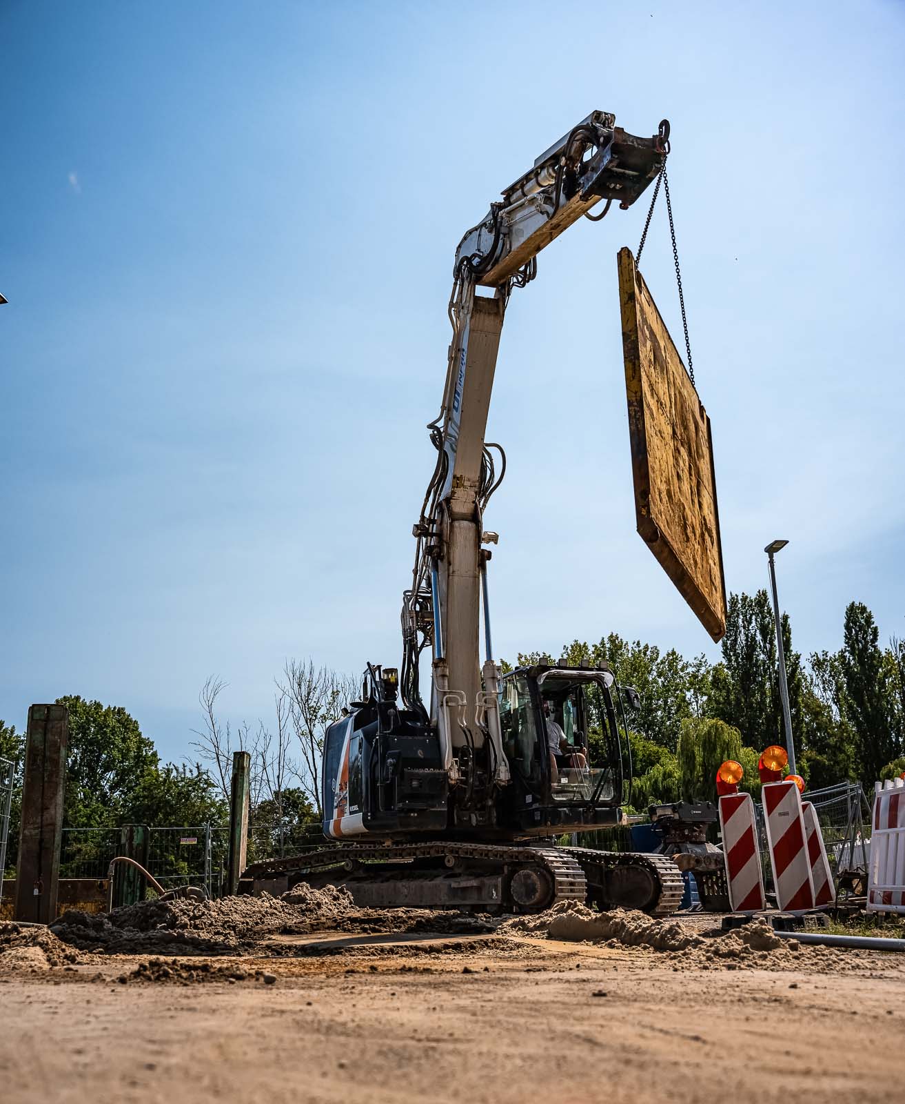 ✅ Maßarbeit beendet: Das Schachtunterteil wurde präzise auf Solltiefe gesetzt und der Kanaldielen-Verbau erfolgreich zurückgebaut.